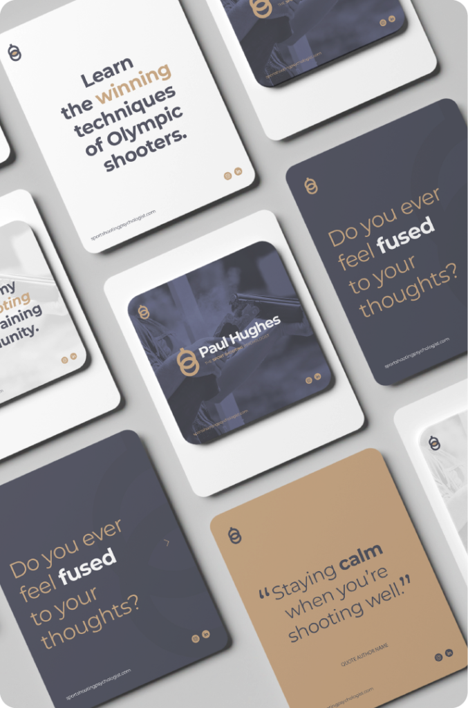 Paul es un coach y psicólogo deportivo de tiro al blanco. Trabaja con deportistas de elite ayudándolos a controlar sus emociones a la hora de su entrenamiento y mejorar desde el punto de vista interno el desempeño de los competidores. El concepto de esta identidad fue incorporar el caño de la escopeta de frente (Arma utilizada), junto con otra forma circular que representa al plato (Objetivo). Superpuestos forman un ojo, simbolizando la mira, la puntería, el enfoque y la concentración.